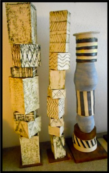 Mi primera aproximación con el arte fue de niña cuando mi madre me llevó por primera vez al estudio de un pintor Tarahumara cuya técnica me impactó. Eran paisajes de la sierra en óleo, acuarela y tinta con un manejo sutil del color. Nos reuníamos con él para tener sesiones de pintura en las que exploraba un mundo de pinceles y colores, que con el tiempo definiría mi búsqueda personal como artista. Fui desarrollando un estilo personal en la escultura que sería el resultado de varias influencias artísticas como lo son el arte primitivo africano, Henry Moore, Jean Miró, Soriano, los cuerpos geométricos de Sebastián por mencionar algunos. Alguien alguna vez me preguntó que qué movimiento sigue mi arte en la escultura. Yo le contesté: mi escultura es una humilde manifestación de la geometría, pero del deseo. Desde el momento en que el barro se desliza por mis manos es como si cobrara vida propia y dictara sus propias formas piramidales, esféricas, coníferas, logrando un estado puro de intuición artística. Es el barro el que le dicta a mis manos si será una esfera, una pirámide o un tótem milenario.Para mí la escultura es un lenguaje que siempre está en constante ebullición y búsqueda.